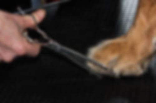 Zwischen den Ballen und Zehen werden Haare und Verfilzungen sorgfältig entfernt, es wird auch hier auf Wunden geachtet. Die Krallen werden auf die optimale Länge gekürzt, hierbei werden die empfindlichen Gefäße nicht verletzt.